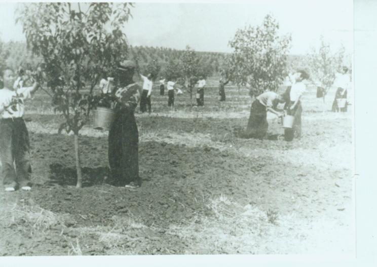 农学院学生在果园里劳动的情景