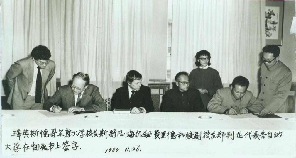 赵教授返回瑞典后,两校通过书信往来进一步细化合作方案。1980年11月,以郑判龙副校长为团长的延边大学代表团提前抵达北京进行筹备。26日上午,以斯特凡·海尔姆费里德校长为团长的斯德哥尔摩大学代表团如约抵达民族文化宫。双方在平等互惠、友好热烈的气氛中举行了会谈,就互派科研人员、交换图书资料、合作研究等事项达成共识,随后顺利签署了学术交流协定。该协定不仅连结了两所大学,也连接了中国社会科学院、北京大学等中方机构与瑞典学术界的联系。