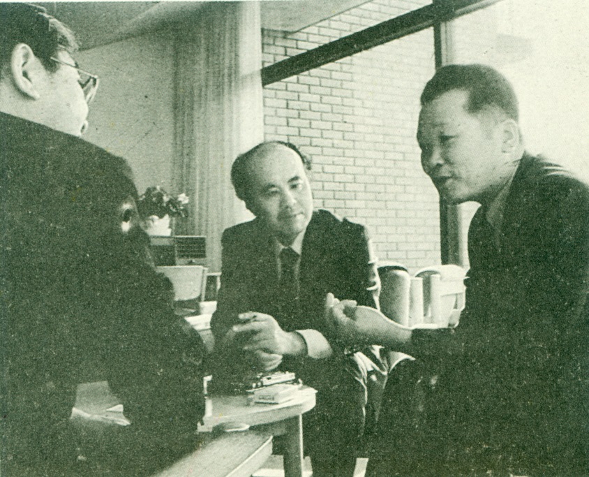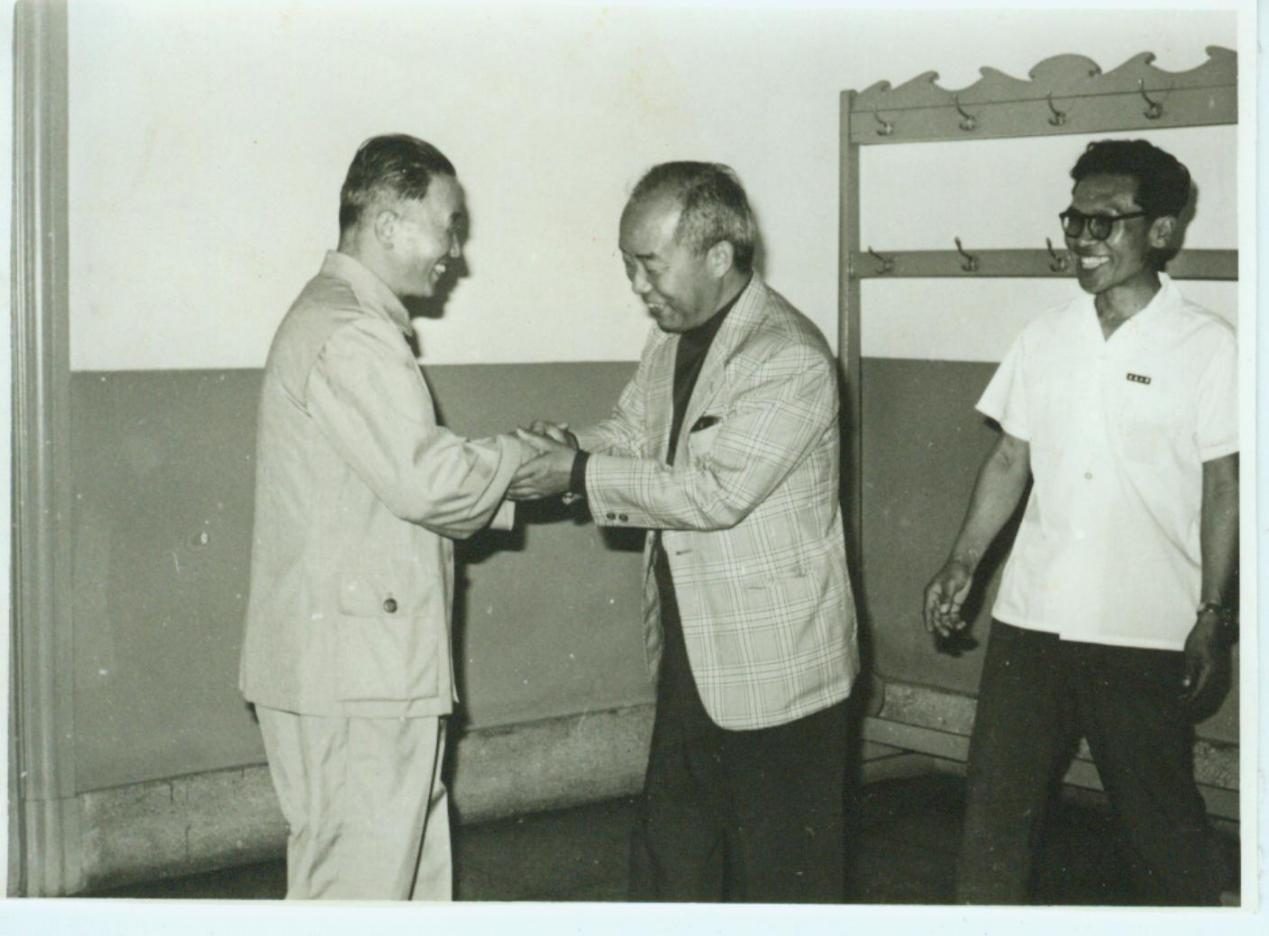 校长朴奎灿(左一)接见赵承福(中),右为校办主任金昌南 (1980年7月)